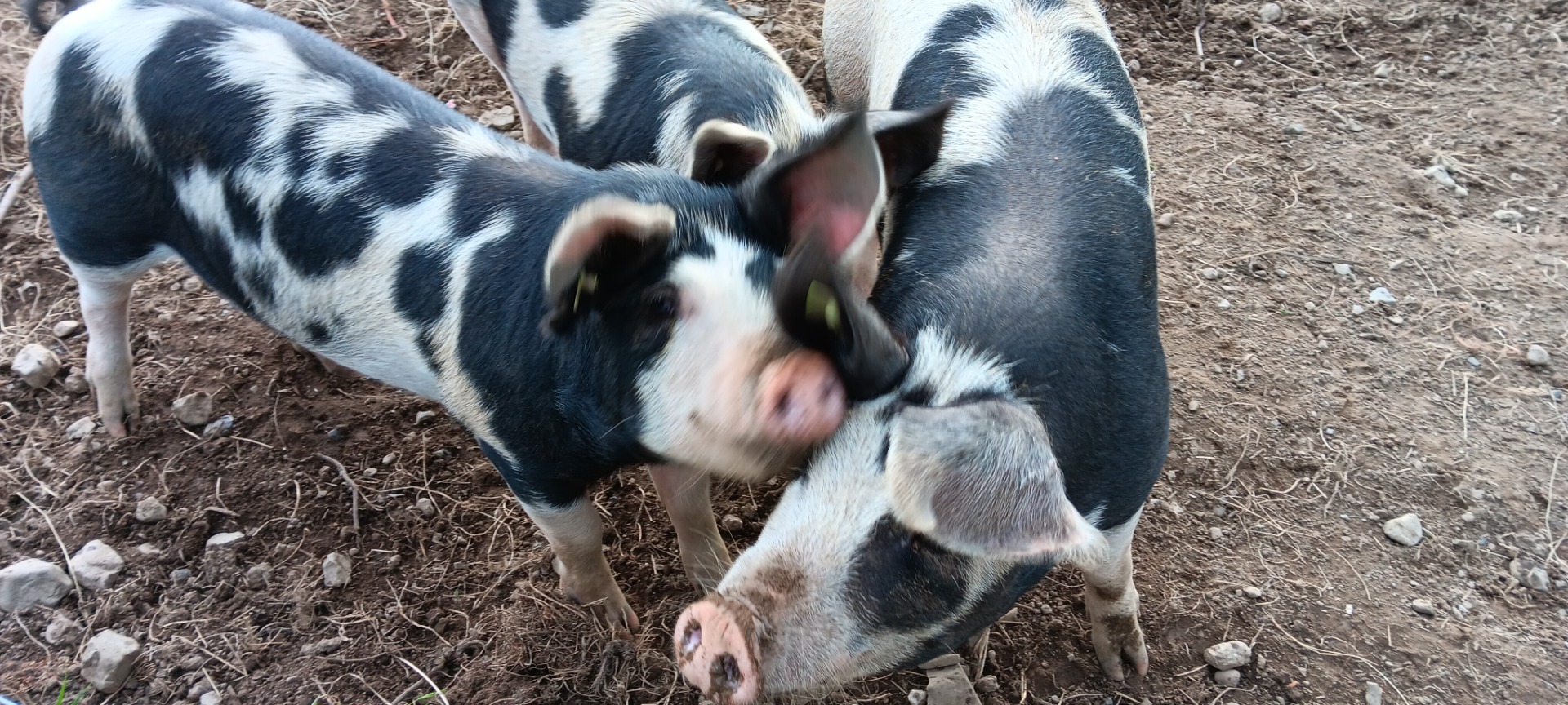 They all live a healthy, happy life, able to wander around and do what comes naturally to pigs, root and dig outside in the fresh air. They lead as natural life as possible and are free to come and go as they please.